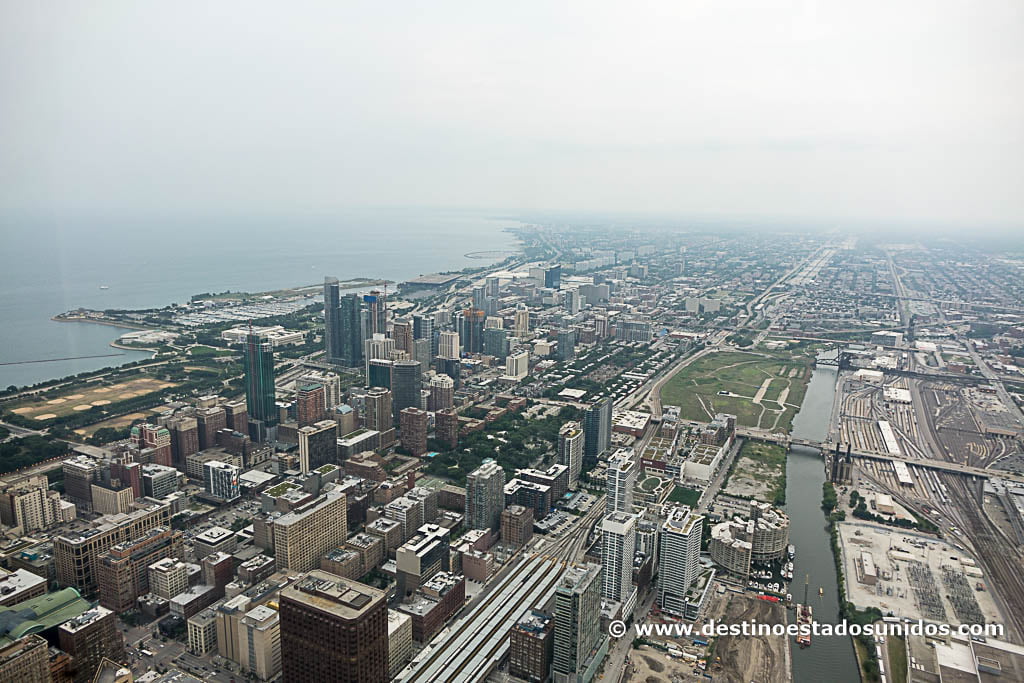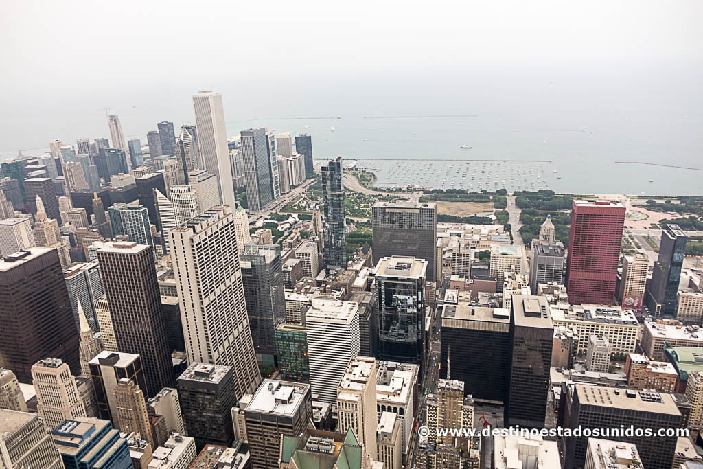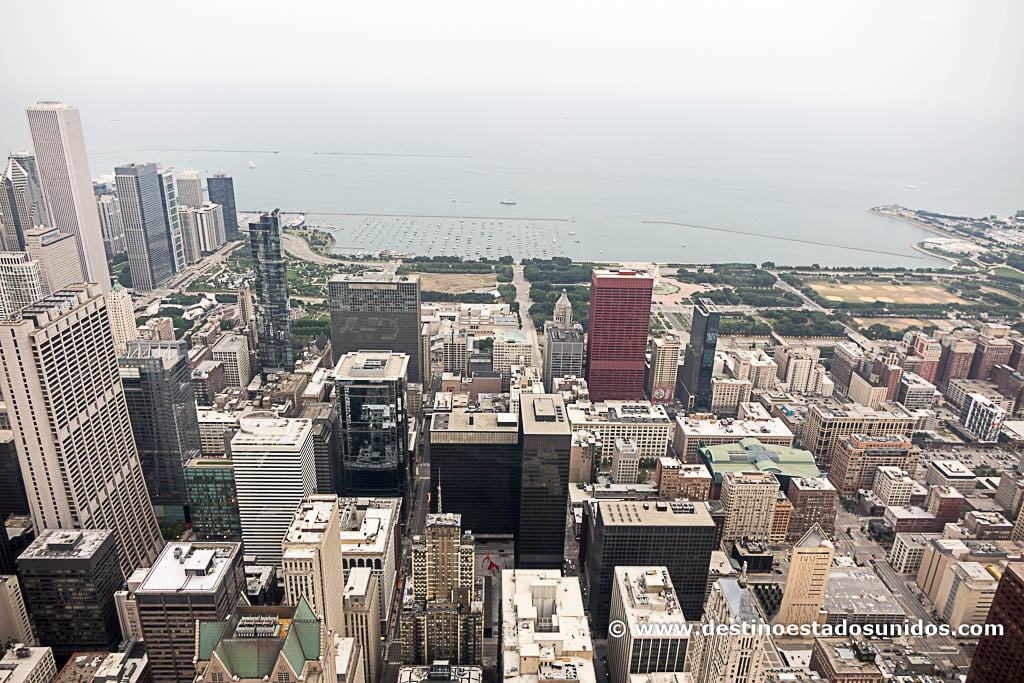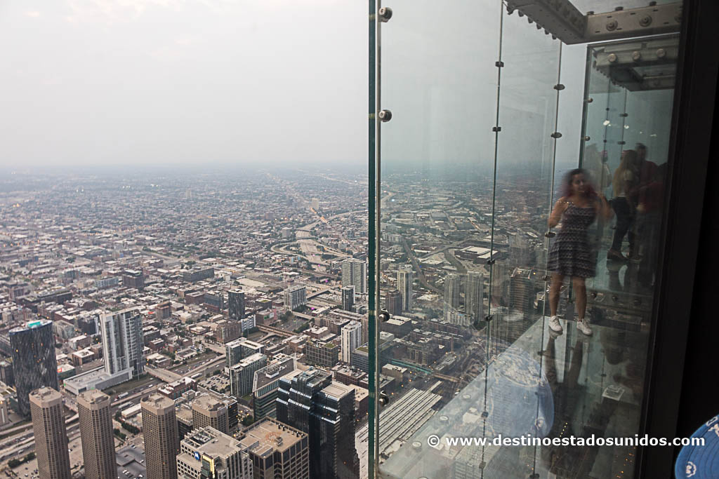 Aquí os dejamos con unas fotografías tomadas desde el interior de Skydeck Chicago, el mirador situado en lo alto de la Torre Willis, el rascacielos más alto de Chicago: