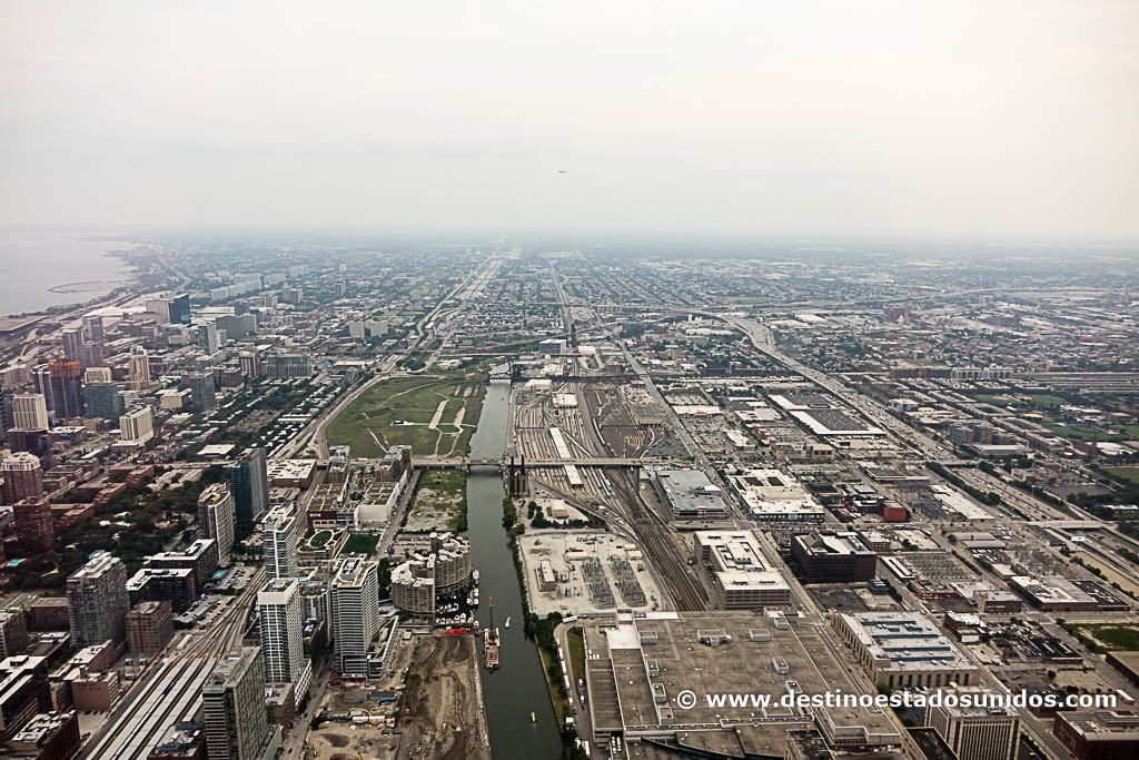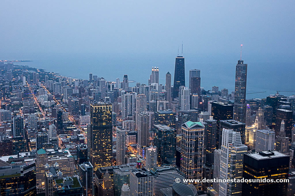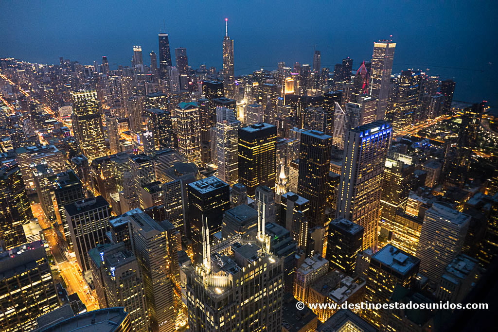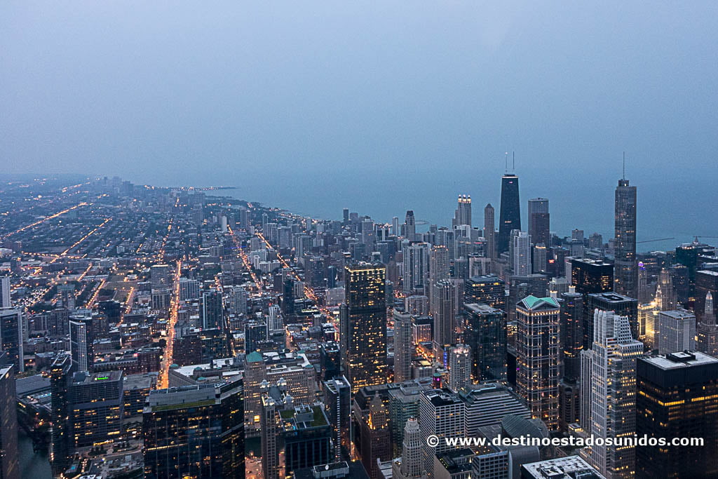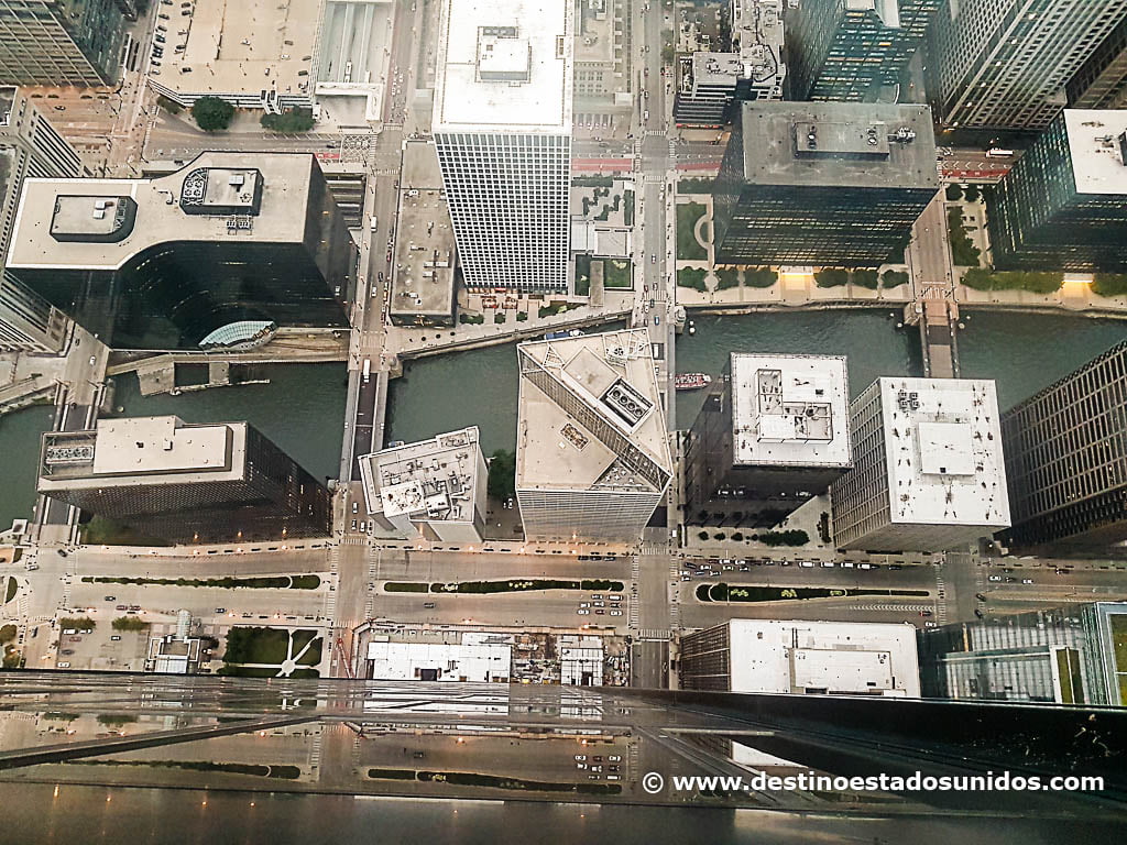 Aquí os dejamos con unas fotografías tomadas desde el interior de Skydeck Chicago, el mirador situado en lo alto de la Torre Willis, el rascacielos más alto de Chicago: